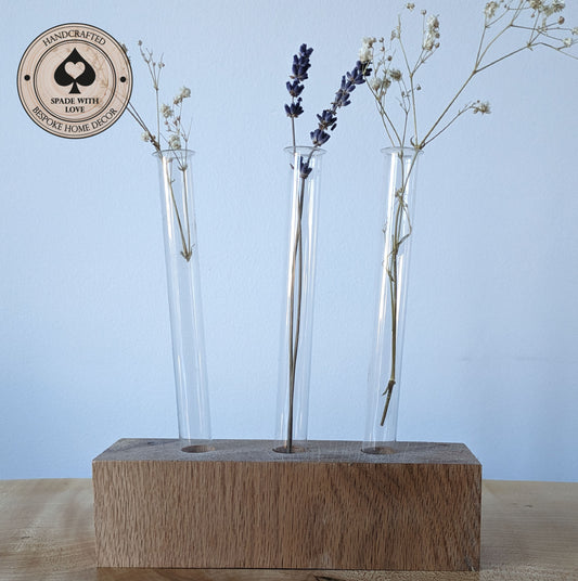 Solid Oak - Flower Test Tube Holder - Custom Engraving