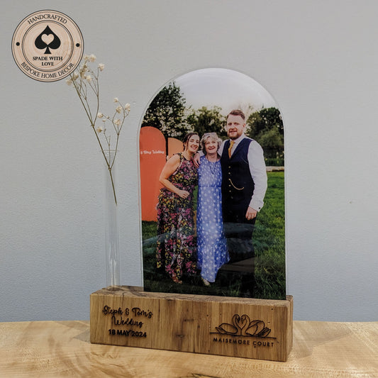 Personalised Solid Oak Acrylic Photo and Flower Holder